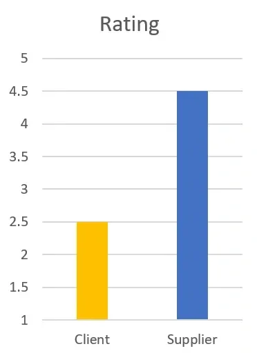 So if the client rating of the provider is low, but the sell-assessment is high (see example bar chart below), this can indicate that there is a lack of awareness at the strategic partner about the underlying issues. It may also show that that the client may not have communicated this to the strategic partner. This can occur where the client does not want to offend the strategic partner team and feel it may hinder the day-to-day relationship, so the client team remain silent about the issues, or only hint obtusely at them!