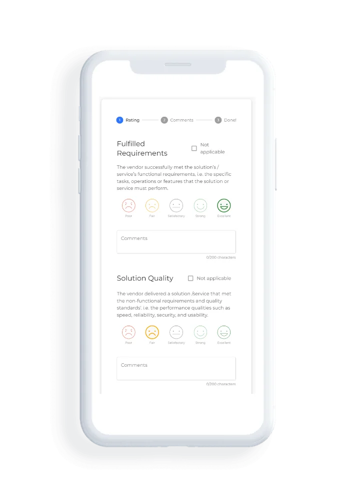 Stakeholders are automatically invited to indicate their satisfaction, rate performance, and share comments. All providing actionable feedback!